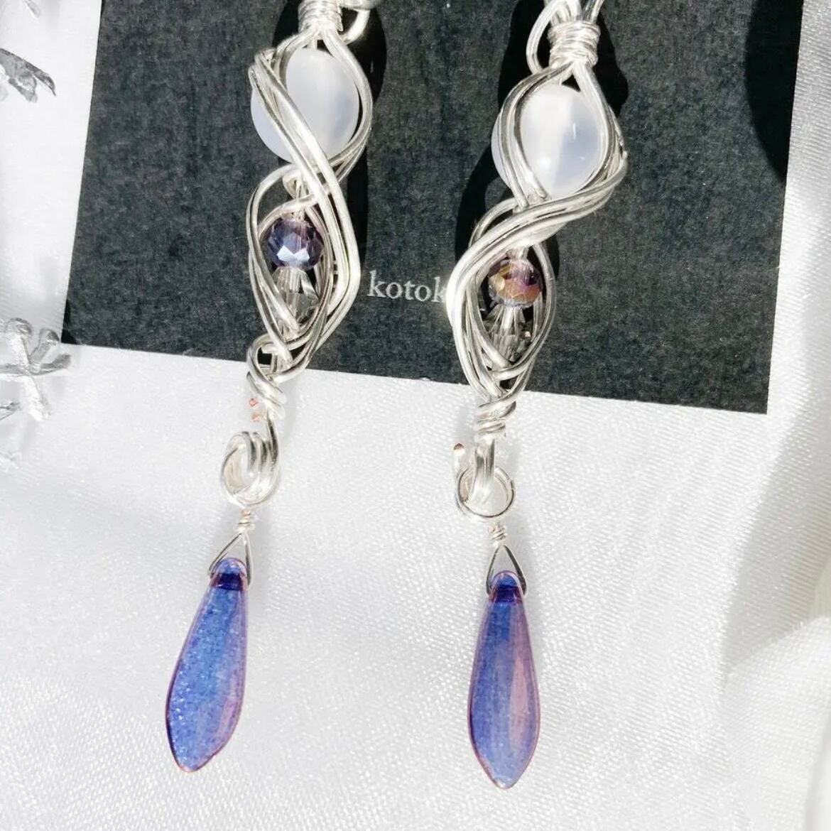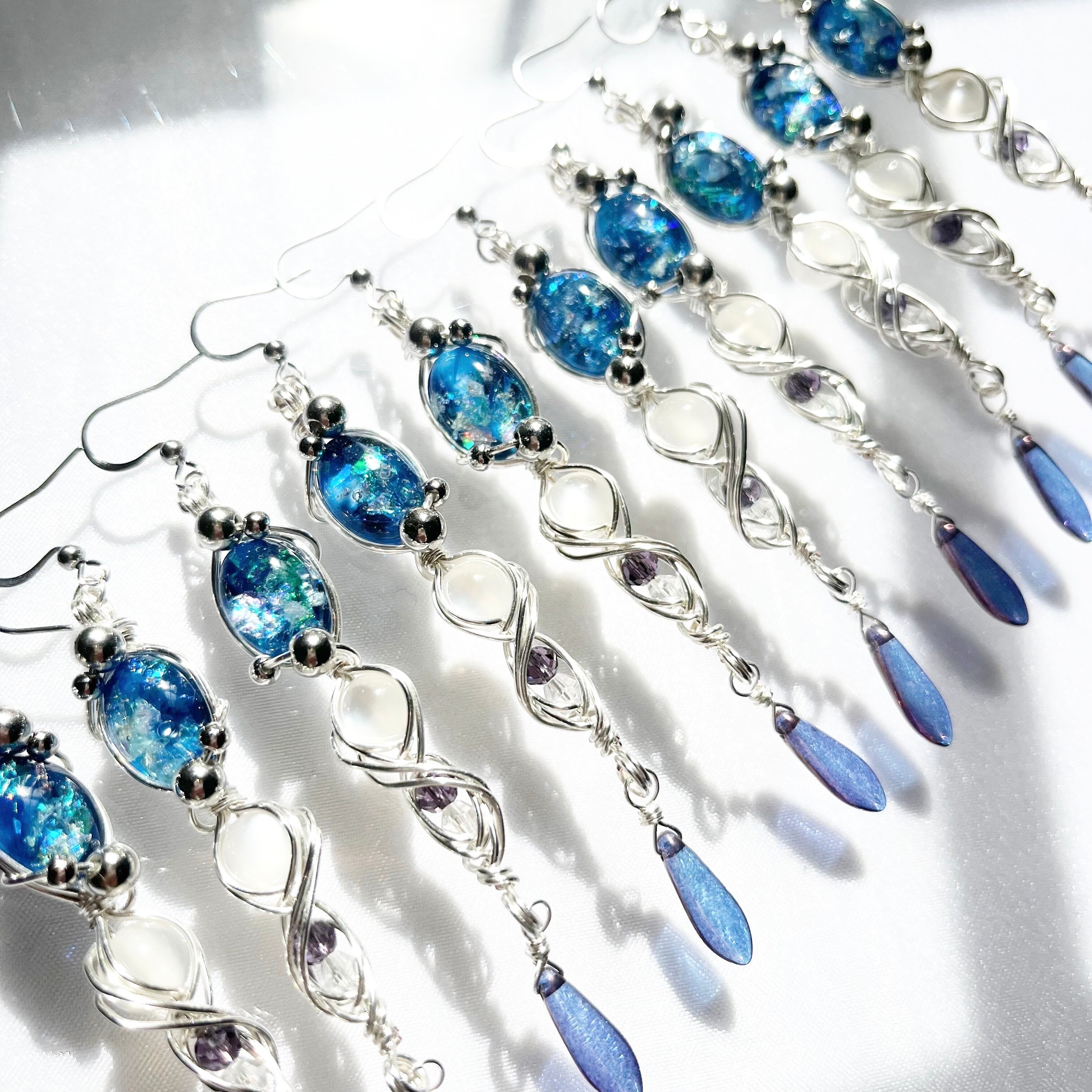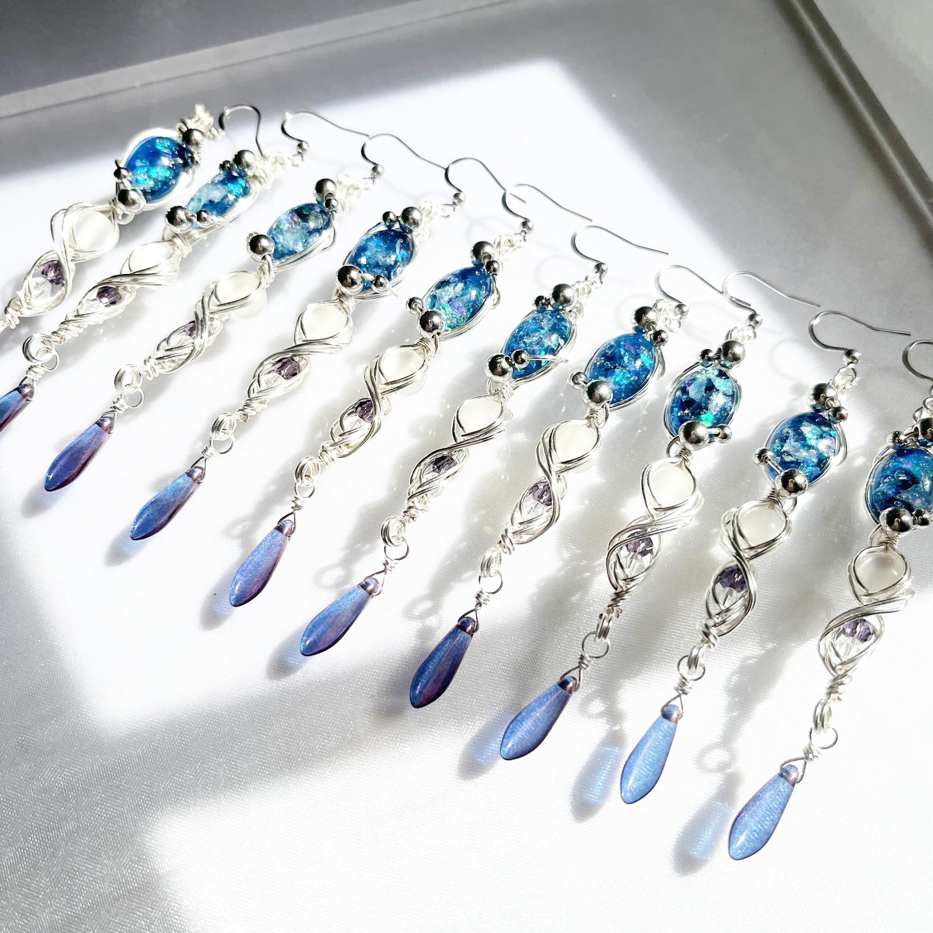 ご購入いただいてから製作を始めますので、写真とはワイヤーの曲線やレジンの輝きなどが少し変わります。
